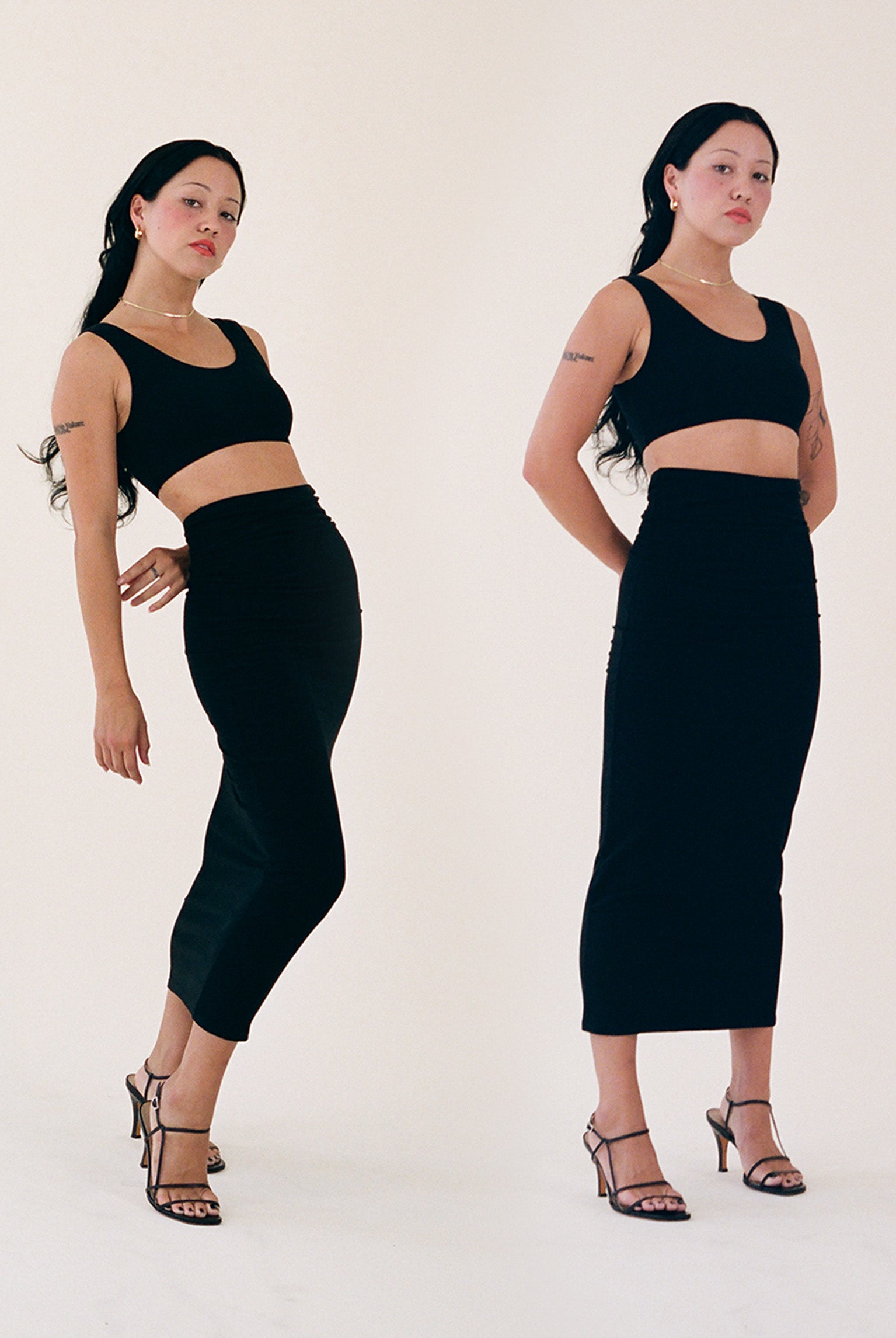 A classic stretch midi tube dress that can be worn as a skirt for ultimate versatility. The Tube is a true closet staple. Made in Los Angeles from cotton spandex that's locally knit and lightly brushed for a plush, luxurious feel.