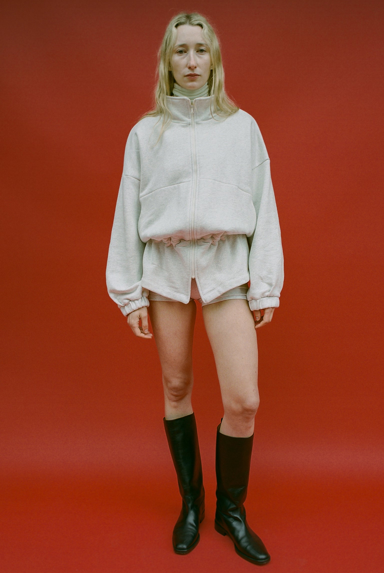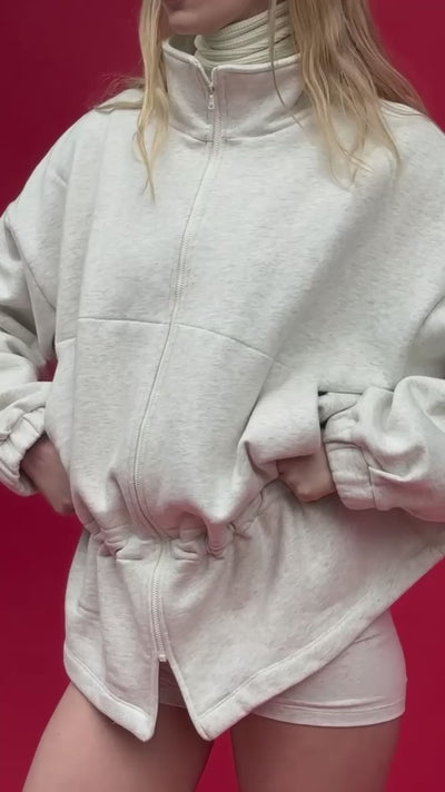 An oversized, fleece jacket with a drawcord cinchable waist, elastic sleeve cuffs and a split hem. Made in Los Angeles from our locally knit, cotton heavy fleece that's both beefy and plush, for a perfect balance of structure and comfort.