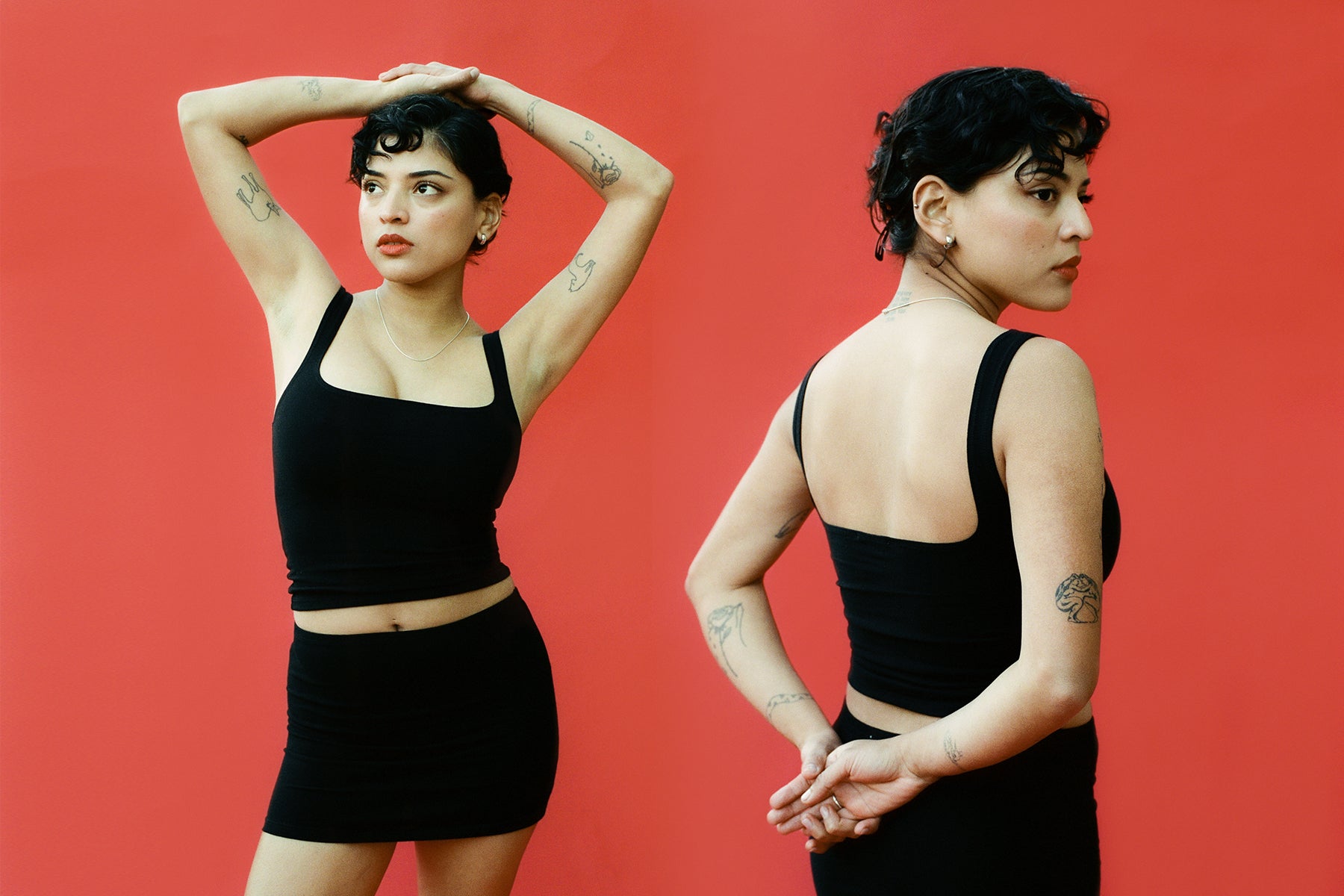 Classic stretch tank top with a perfectly scooped, slightly squared neckline and hip-grazing length. Made in USA from locally sourced, high-end cotton spandex jersey that’s lightly sanded for a plush feel.