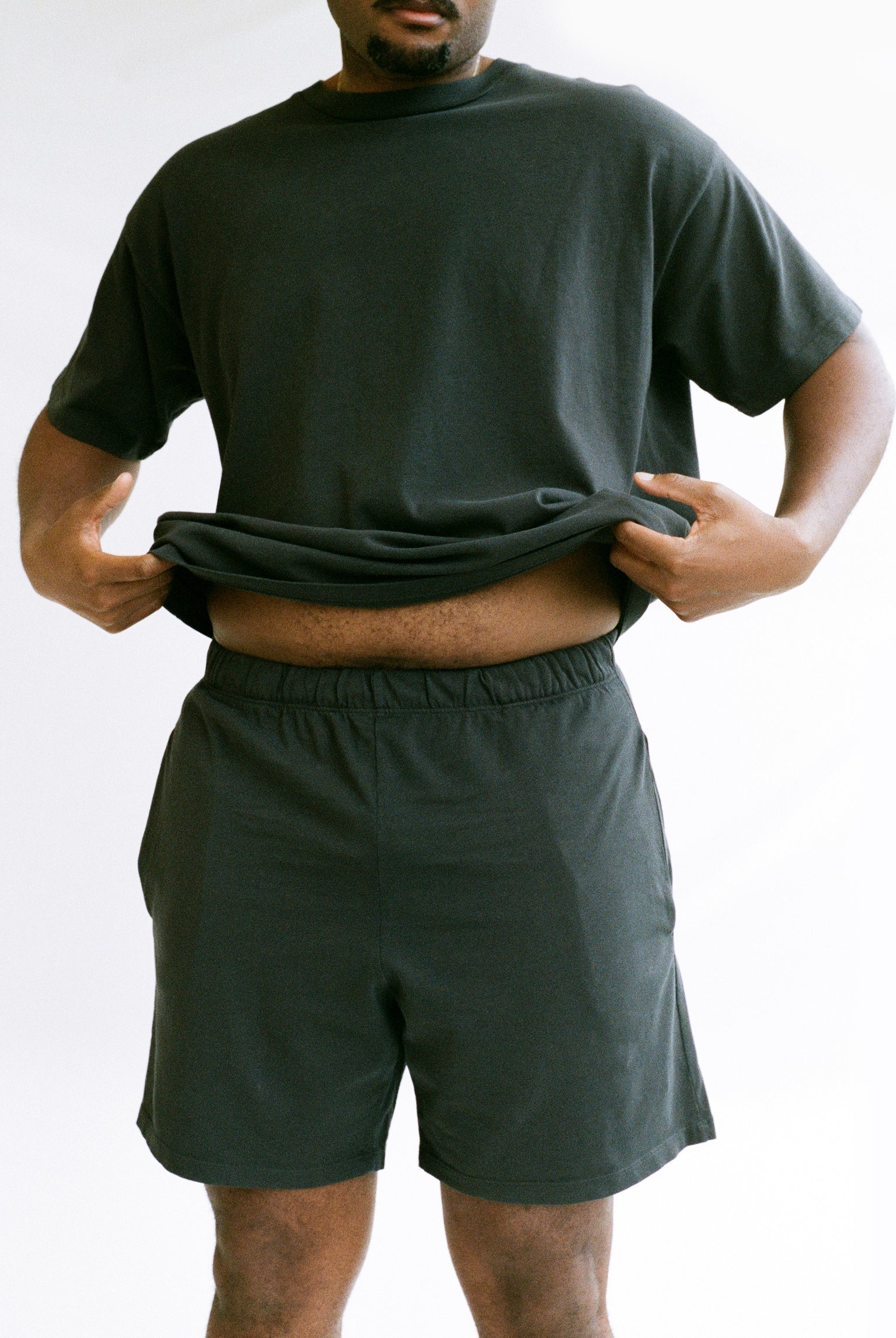 Heavy Jersey - 100% Combed Cotton. Fit is oversized. We recommend sizing down a full size for a more traditional fit.