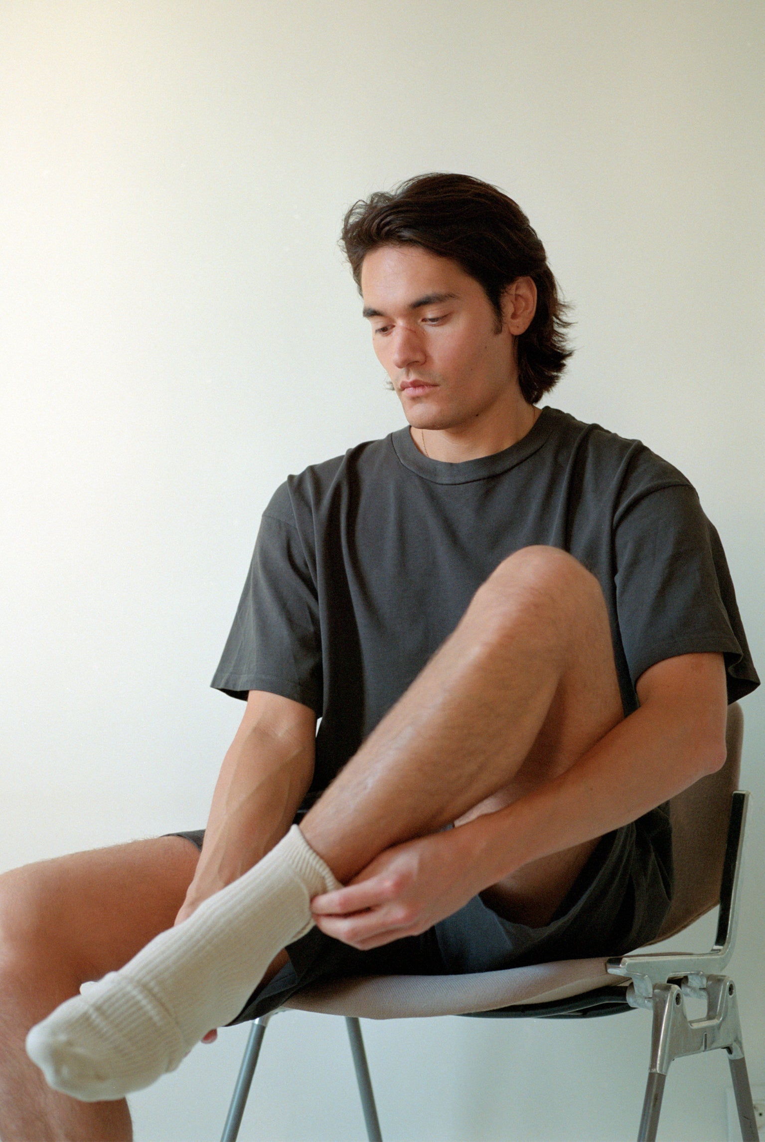 A classic, drop-shoulder tee in ultra-heavy, combed cotton jersey featuring a 90's inspired, boxy fit. Garment dyed with a special blend of enzymes for a softness usually reserved for vintage pieces that have been worn and washed for decades.